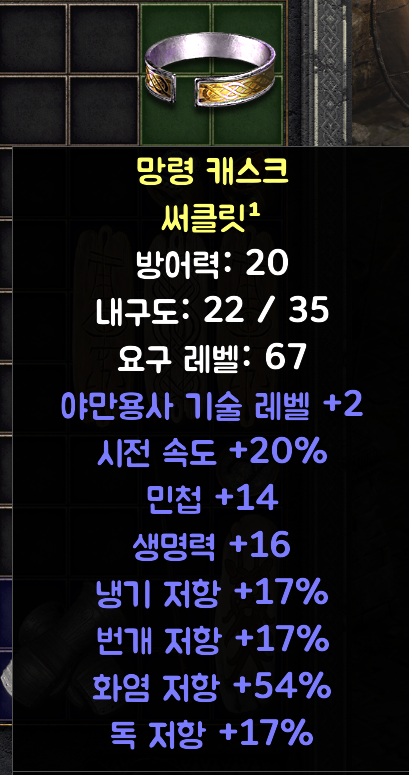 [시세] 써클릿이요 바바2스킬20패캐17올레지화저37민첩14생명력16