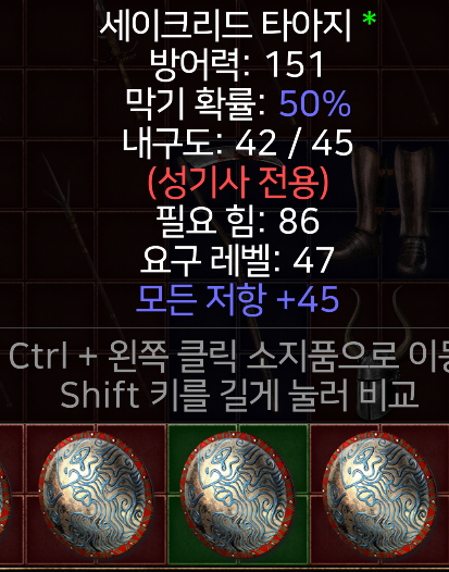 151 방어 / 45 올레 세이크리드 타아지 노솟 방패 오옴룬에 팝니다
