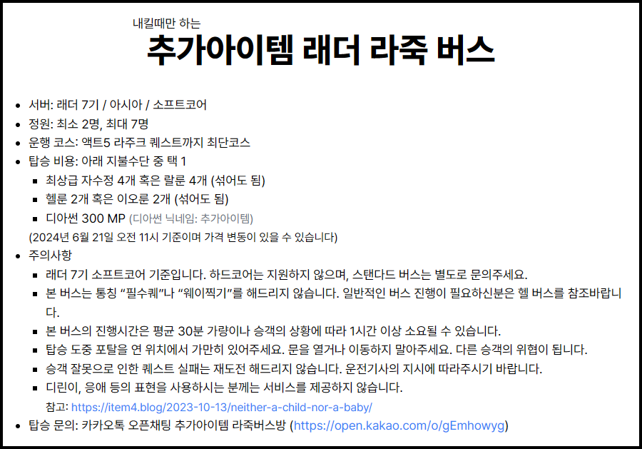 [모집] 초저가 추가아이템 라죽버스
