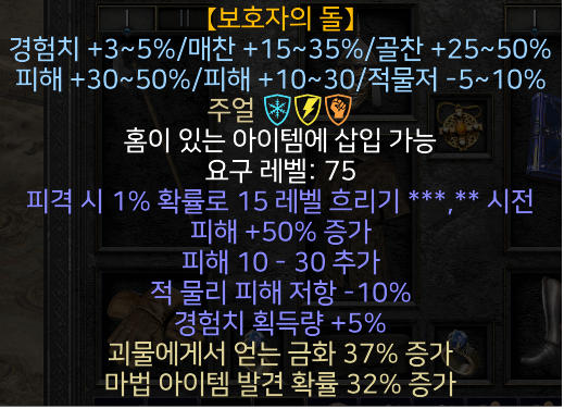 [시세] 보호자의돌 으뜸 팝니다 ( 피해 50 / 물리피해 -10 / 경험치 5% / 매찬 32% )