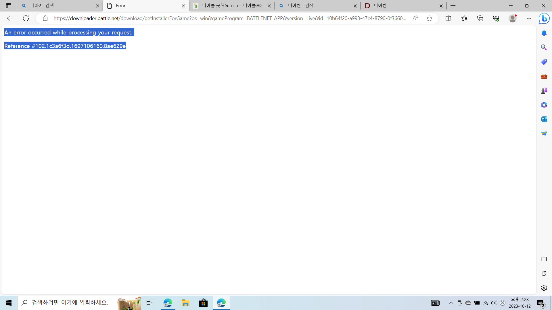 다시 배틀넷 앱을 깔려니 다운이 안받아짐니다 ㅠㅠ An error occurred while processing your request. Reference #102.1c3a6f3d.1697106160.8ae629e 이거만 계속 뜨네요 ㅠㅠ 이거 해결 방법 있을까요?? |